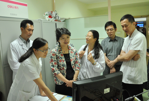 616,无锡市副市长刘霞,率领市政府领导成员、市残联领导来我院视察调研。市卫生局、市医管中心领导等陪同视察;院长周小金、党委书记於煌等院领导向市领导汇报我院出生缺陷预防工作情况。