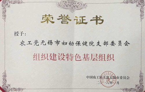 我院农工党妇幼支部2015年各项工作成绩显著,近日被中国农工民主党无锡市委评为2015年度“组织建设特色基层组织”、“社会服务特色基层组织”。