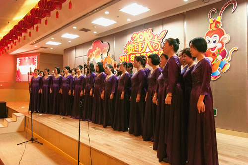 迎春联欢紧接着表彰大会进行,12个演出节目有来自各个分工会自编自导自演的结晶,也有医院各个兴趣小组的精心准备,在“天使合唱团”的压轴演唱中,会场的气氛达到了高潮,大家在喜庆、欢乐、祥和、热烈的氛围中期待新年的来临。(宣传科)