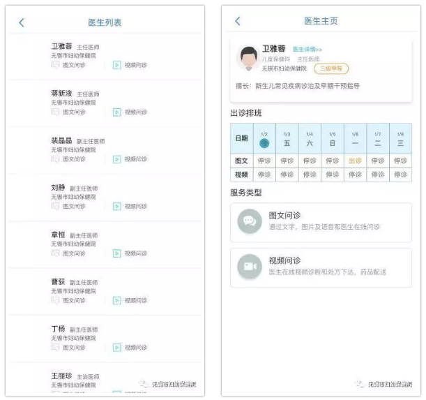 点击“线上复诊”后选择“无锡市妇幼保健院”。